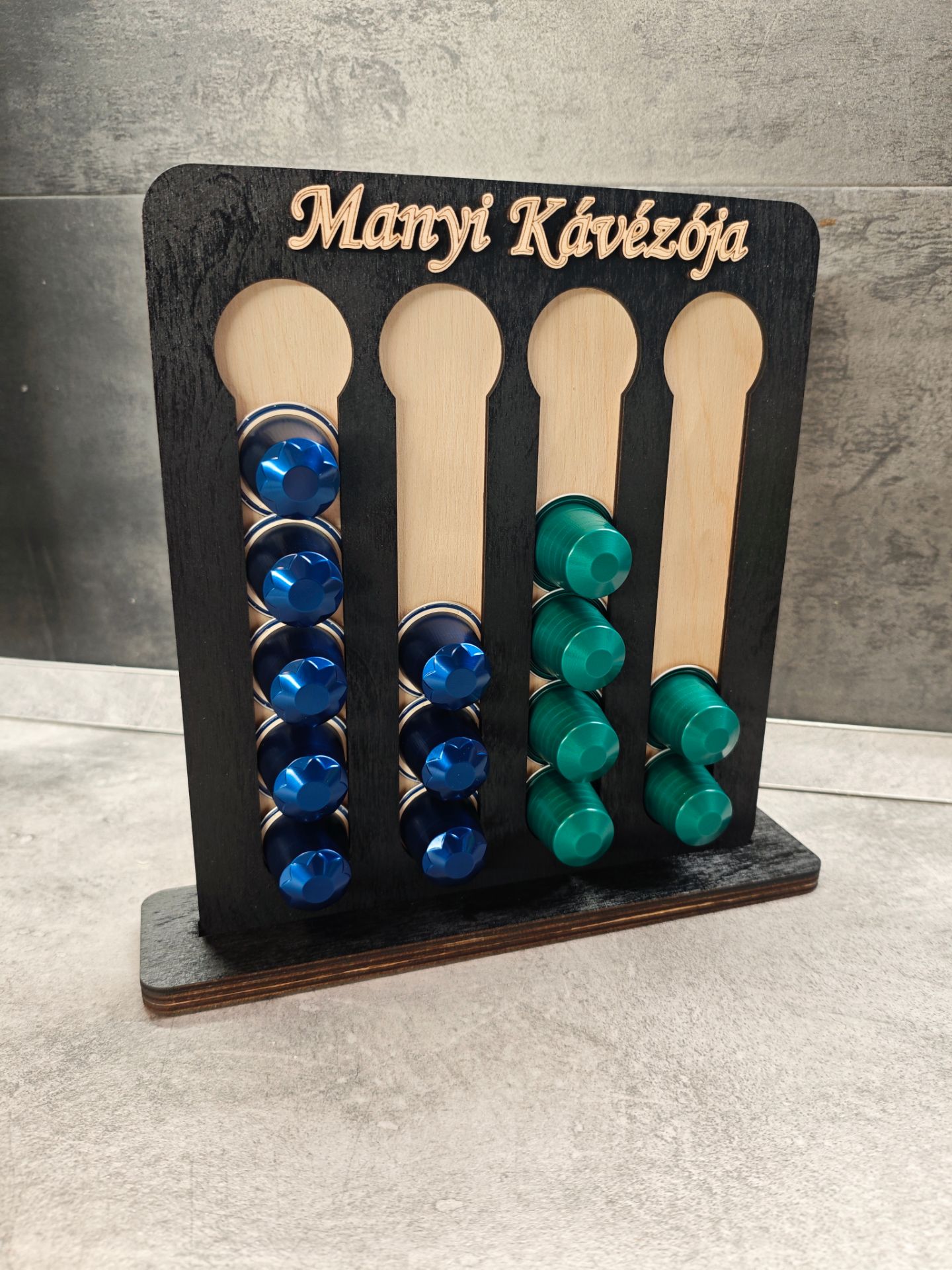Ez a kapszulatartó nemcsak megkönnyíti a mindennapokat, hanem dísze is lehet a konyhapultnak. Egyedi felirattal kiegészítve pedig tökéletes ajándék lehet bármilyen alkalomra.