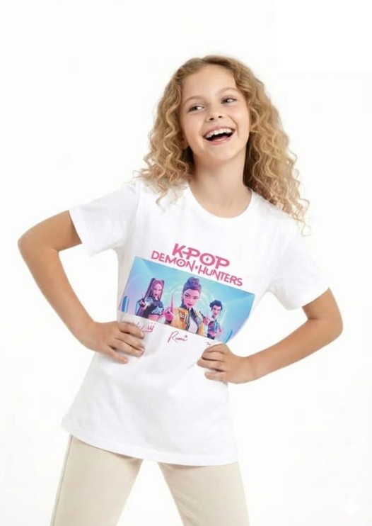 Modern K-pop stílusú póló letisztult grafikával és kényelmes viselettel. Tökéletes választás mindennapi outfithez vagy streetwear megjelenéshez.