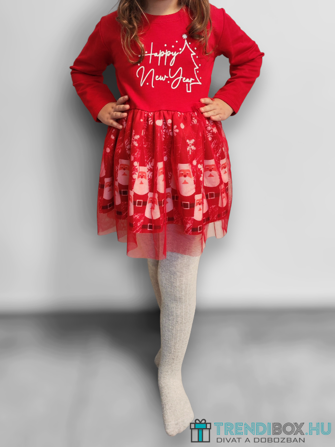95% pamut 5% elasztán Enyhén melegített, mégis elegáns piros kisruha kétrétegű szoknyával. Tüllös felső réteggel, az alsó szoknya szivacsos anyagú, mikulás mintával díszítve. Igazi kényelmes téli viselet ünnepi hangulatban.